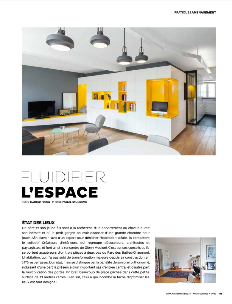 Publication du projet Buttes Chaumont dans le magazine Architectures A Vivre de décembre 2015 / janvier 2016.