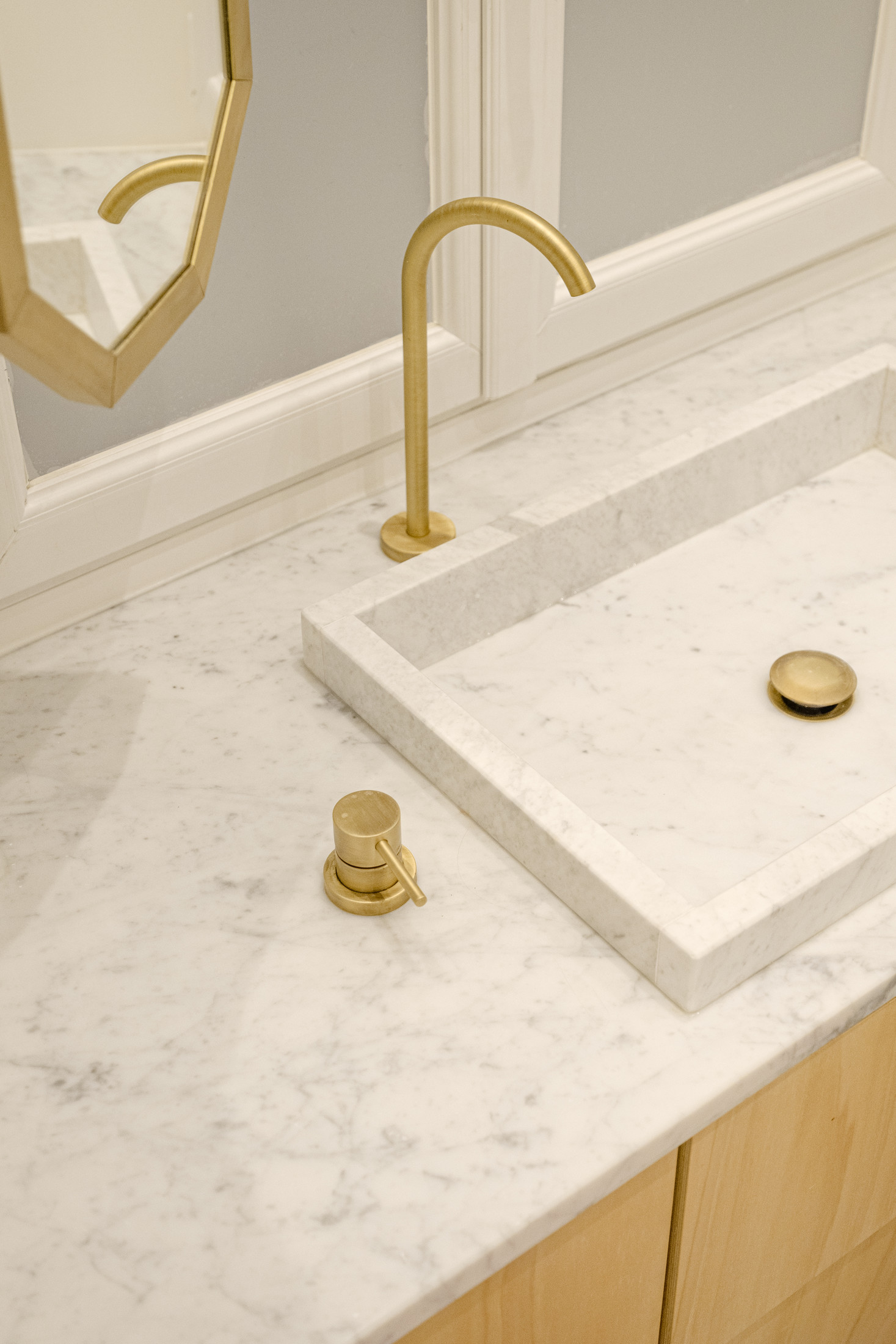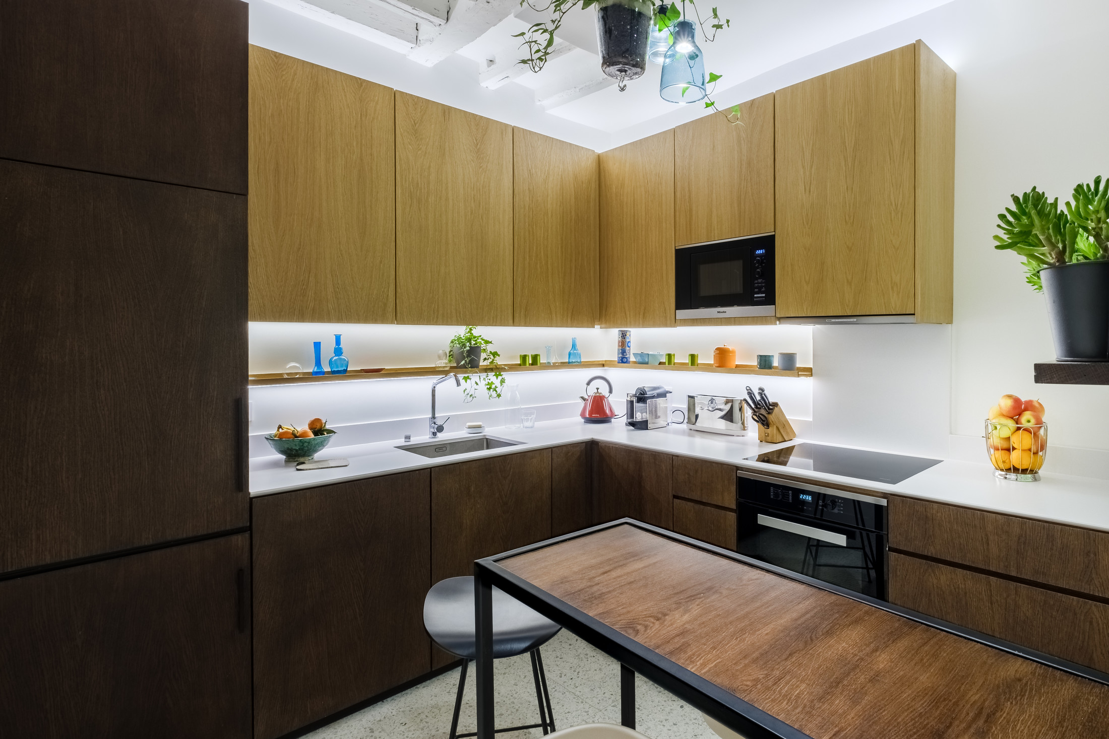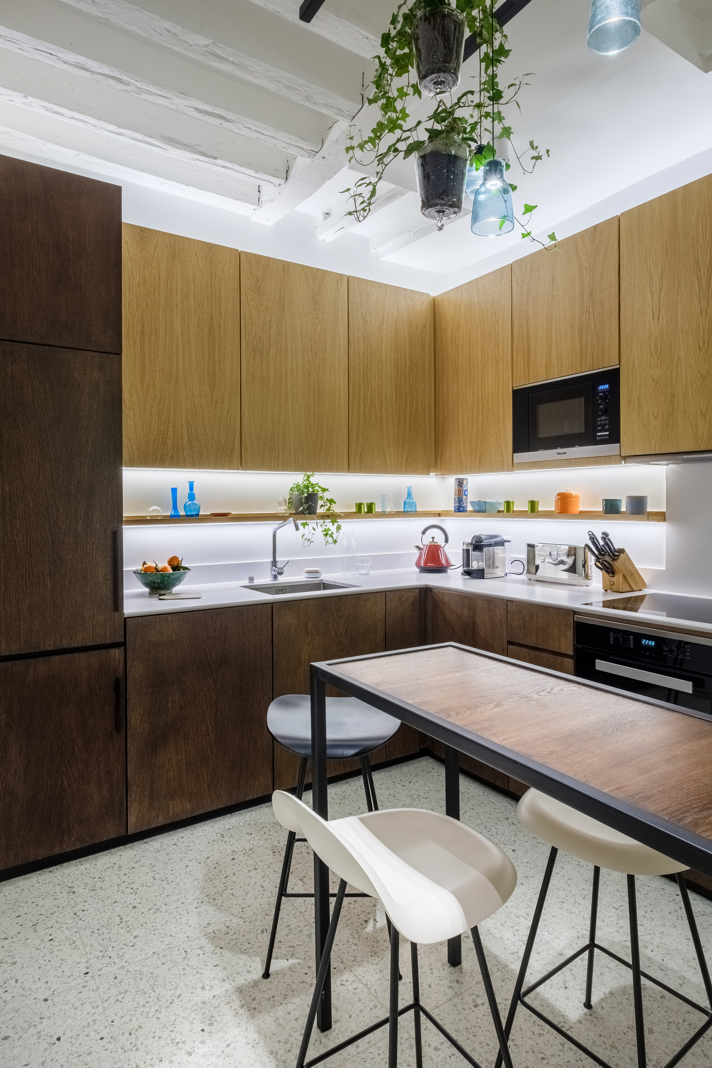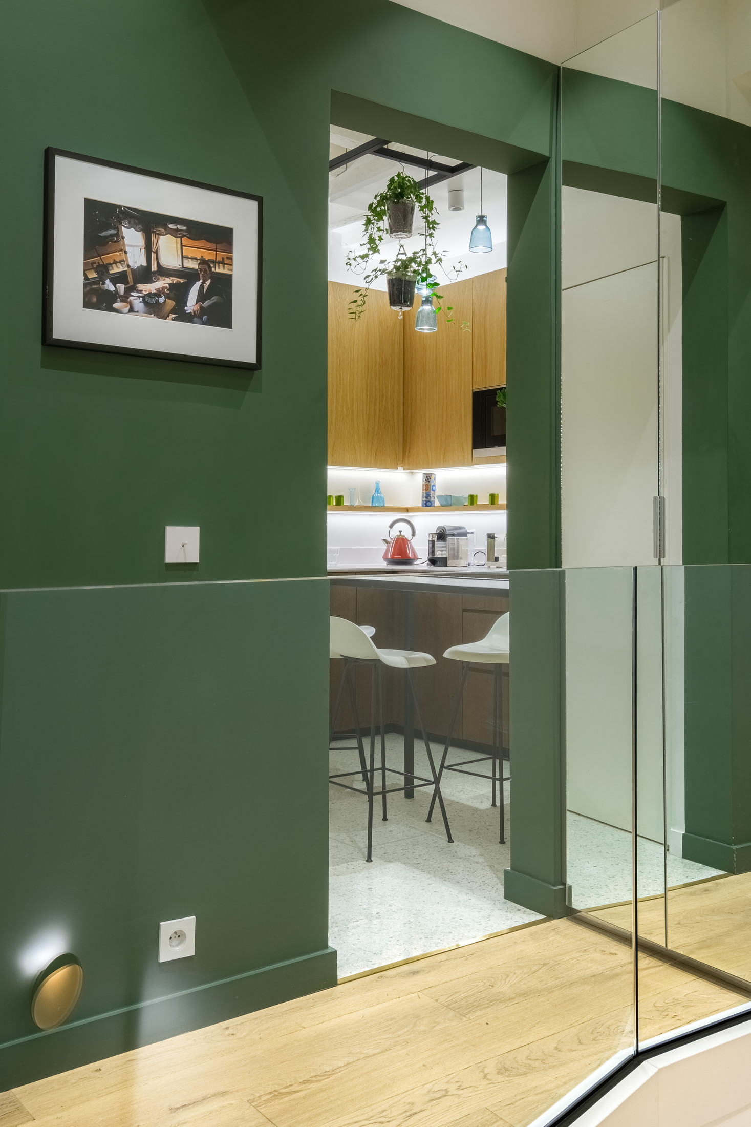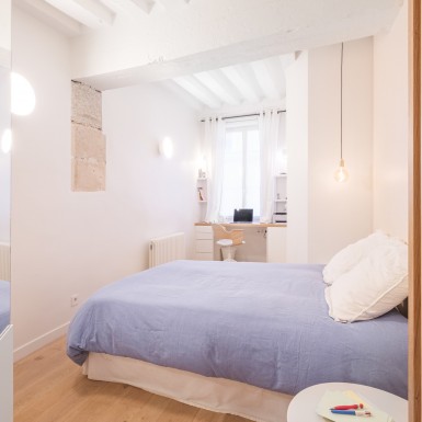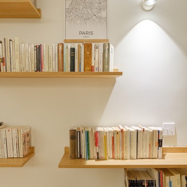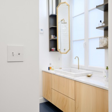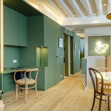 La propriétaire a acheté l’appartement en dessous du sien pour créer un duplex familial de 100m2 à Paris.