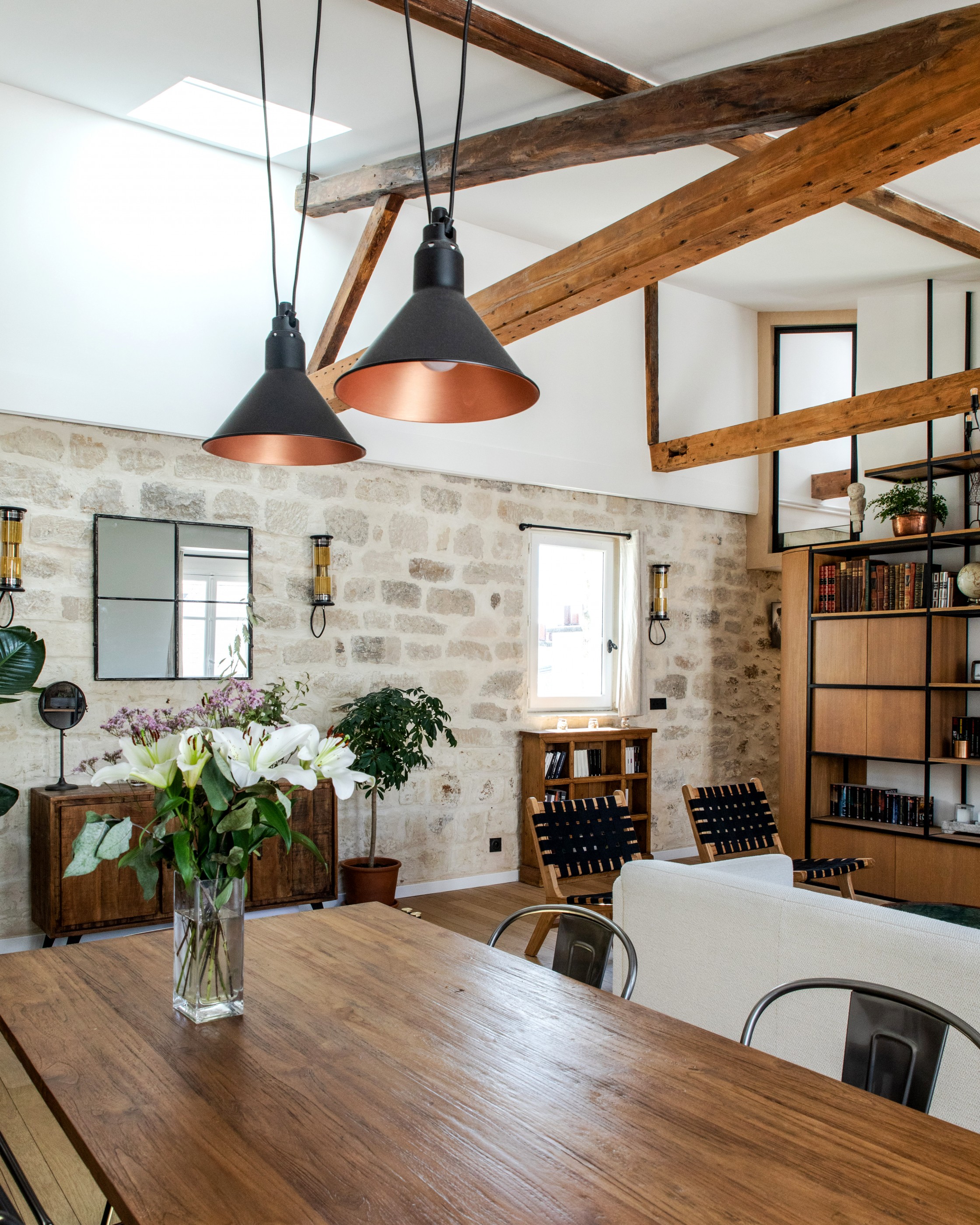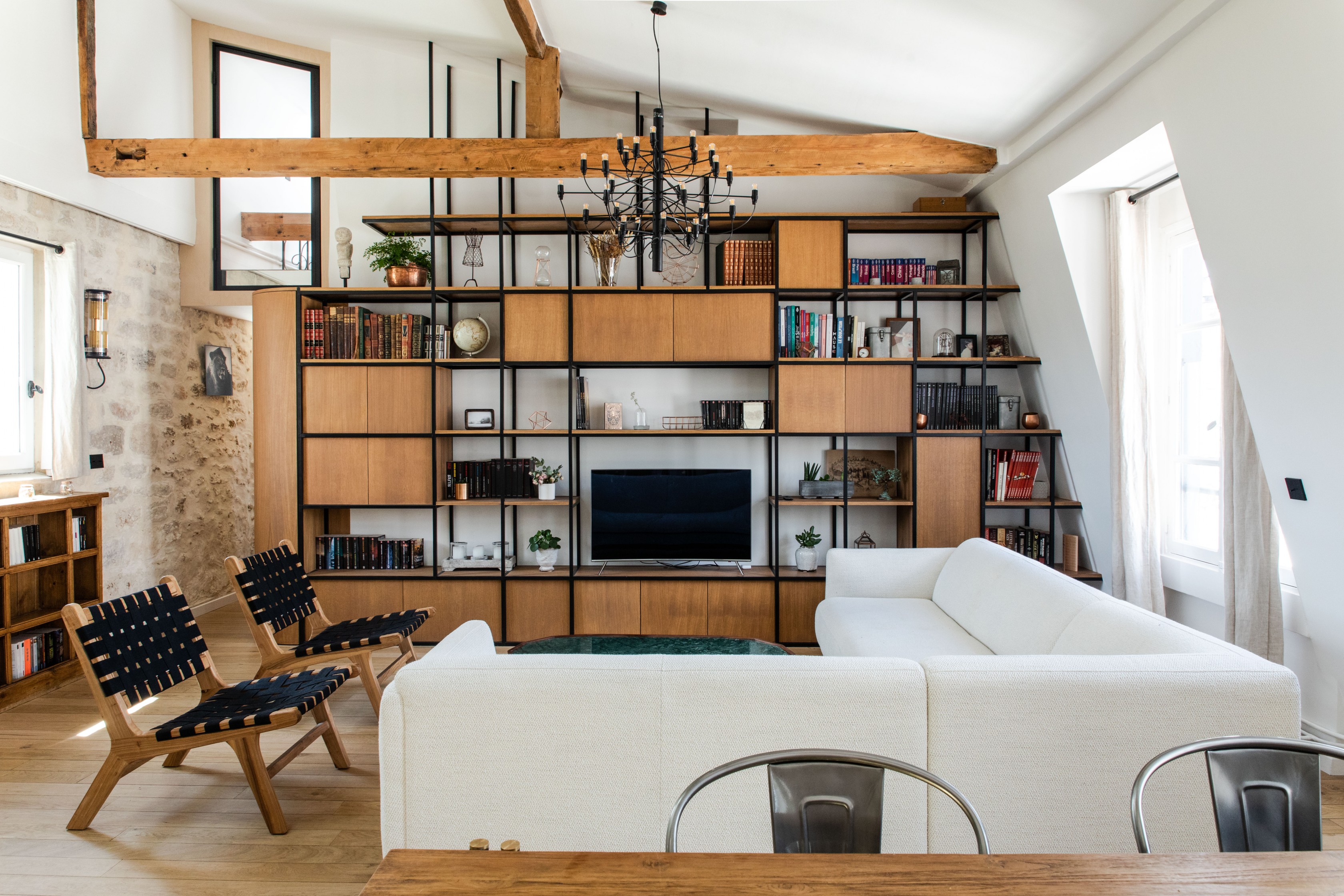 « Avant. Dans cet immeuble en pan de bois du XIXᵉ siècle, à un jet de pierre des Halles, ce couple a acquis un appartement sous les toits. Ourlé de poutres apparentes, le 100 m² se compose d’une belle pièce de vie, d’une petite cuisine, de deux chambres avec salle de bains et d’un bureau. Depuis la terrasse qui le surplombe, il offre en prime des vues merveilleuses sur l’église Saint-Eustache, Beaubourg et les toits de Paris. C’est l’élément de charme qui a fait craquer les propriétaires.